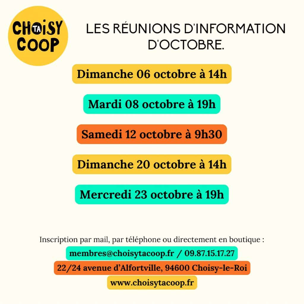 La réunion d’information est l’étape obligatoire avant l’adhésion, elle a lieu à la coop où vous allez pouvoir avoir toutes les informations nécessaires pour réussir vos débuts en tant que coopcopain et coopcopine