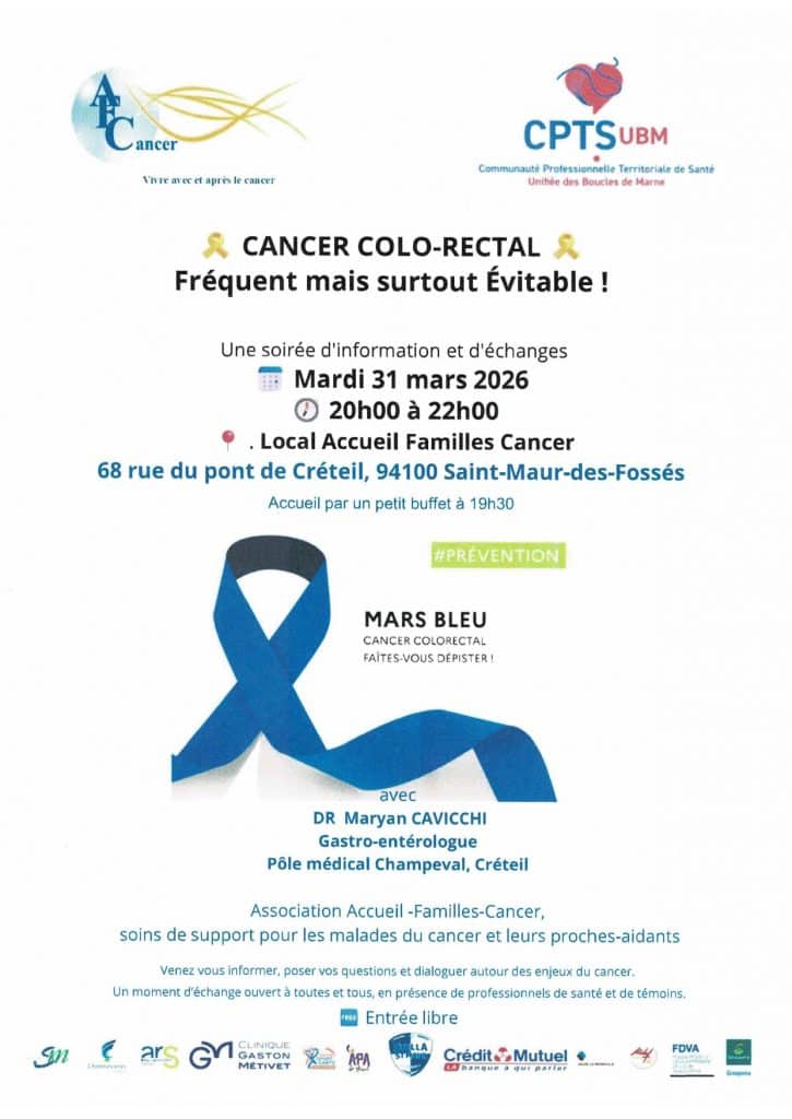 Soirée d’information et d’échanges sur le cancer colorectal, dans le cadre de Mars Bleu (prévention).