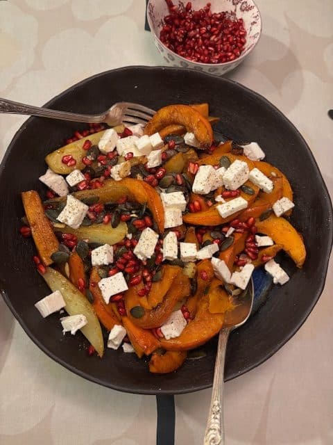 Courge rôtie caramélisée, grenade et féta